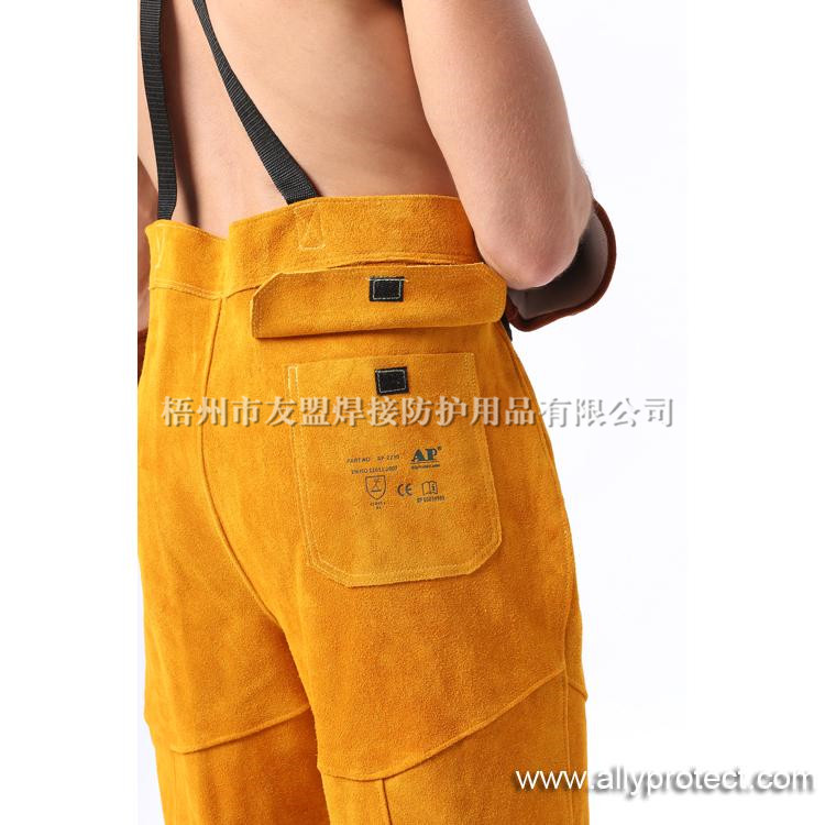 - 產(chǎn)品描述: 金黃色牛二層皮全皮焊褲,能夠在焊接飛濺嚴重的環(huán)境中,給使用者的身體提供安全有效的保護。